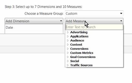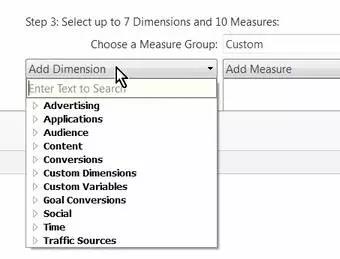 我们也可以使用选择度量组下拉菜单,使用一些常见的分析字段组合来填充度量。