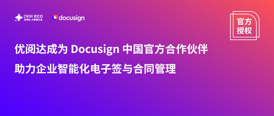 作为 Docusign 中国合作伙伴(官方授权代理商),优阅达 DKM ECO(Data Knowledge Management Limited) 为企业提供从产品咨询、方案部署到技术支持的全方位服务,协助客户在不同业务场景中高效、安全地落地电子签解决方案,构建智能化的合同管理体系。