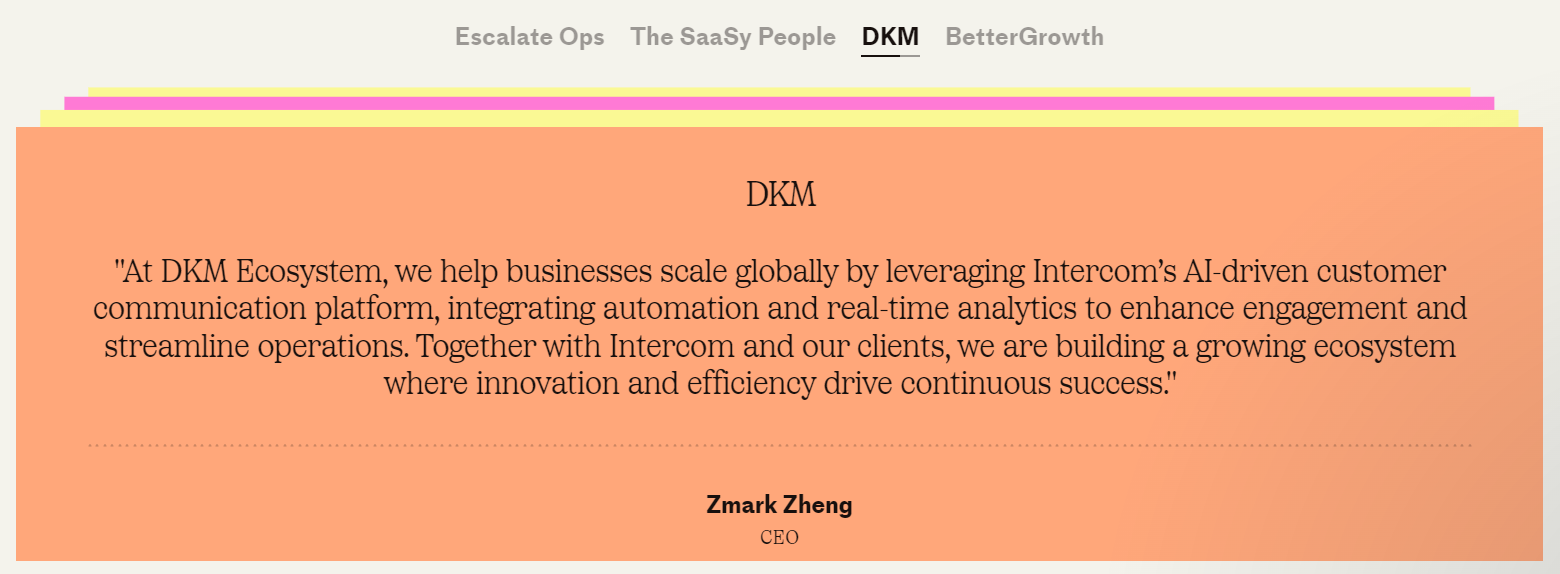 对于企业全球化增长生态的建设,优阅达的 CEO Zmark Zheng 也表达了他的愿景:“在 DKM Ecosystem,我们致力于帮助企业借助 Intercom 的 AI 驱动沟通平台实现全球化扩张。通过深度整合自动化能力与实时数据分析,我们协助客户提升互动效率、优化运营流程。携手 Intercom 以及我们的合作伙伴,我们正在共同打造一个以创新与高效为核心驱动力的增长生态体系。”