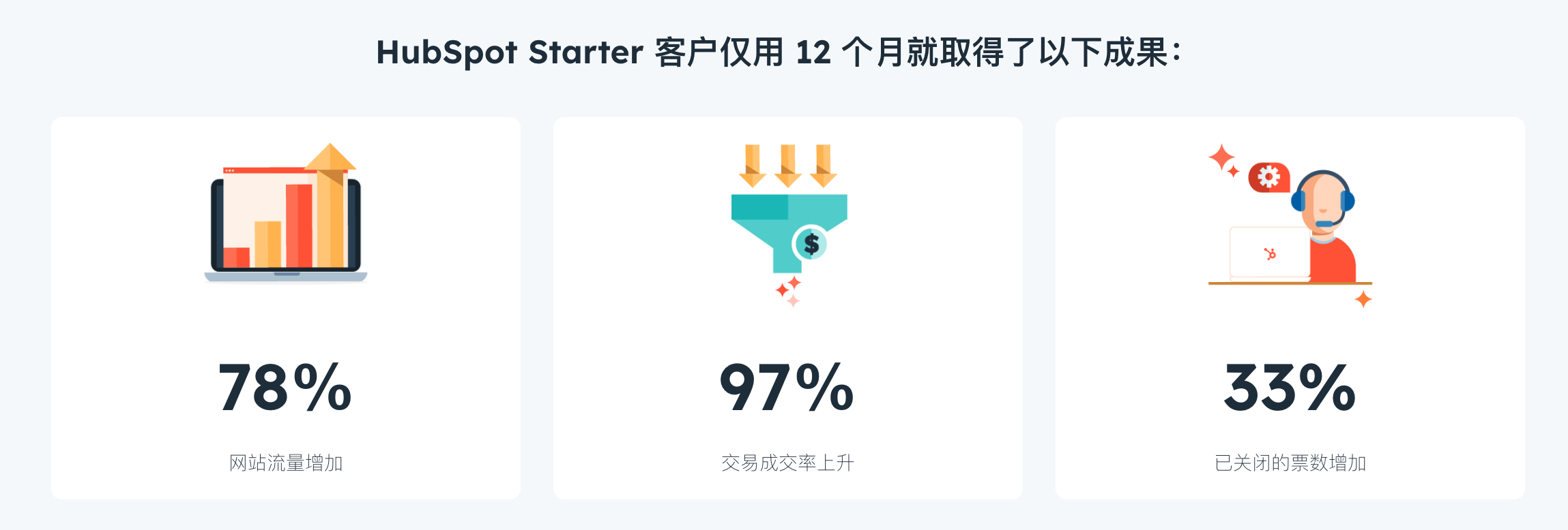 从 Starter 套件功能帮助初创企业实现快速起步,到 Enterprise 平台助力成长型企业在扩展中优化效率,再到 AI 功能提升智能化运营,HubSpot 为企业的每一步成长提供了全方位支持。