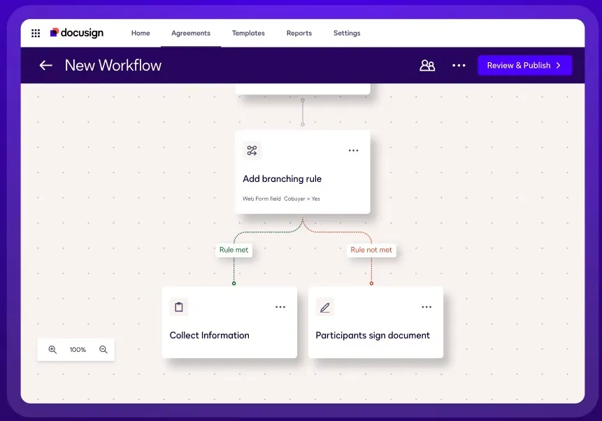 Docusign Maestro 以令人惊讶的简单方式解决了上面的这些问题。它让任何团队都能轻松创建定制的工作流,将整个协议流程连接起来,而且无需编写代码。
