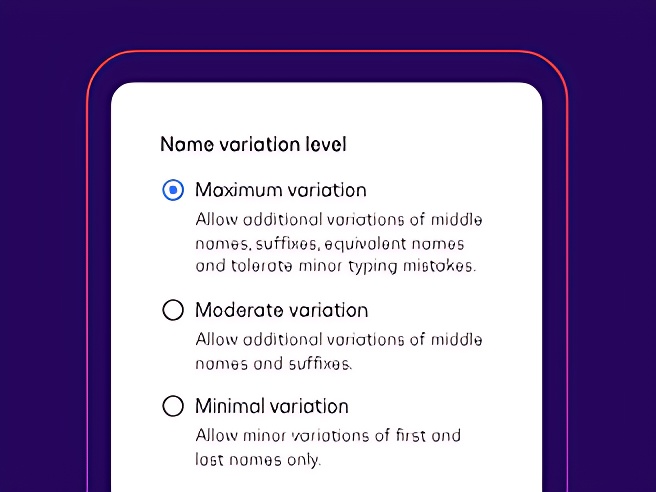 从预设配置中选择或进行自定义,例如身份证件类型、签发国家、保留的身份证件数据以及姓名匹配精度。
