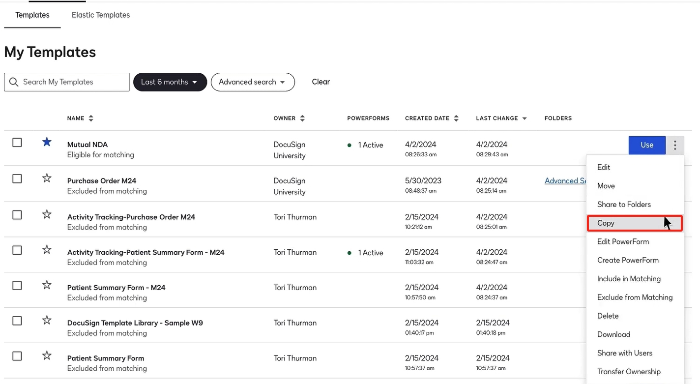 如果需要创建与现有模板类似的新模板,在操作菜单中点击 “复制” 即可。