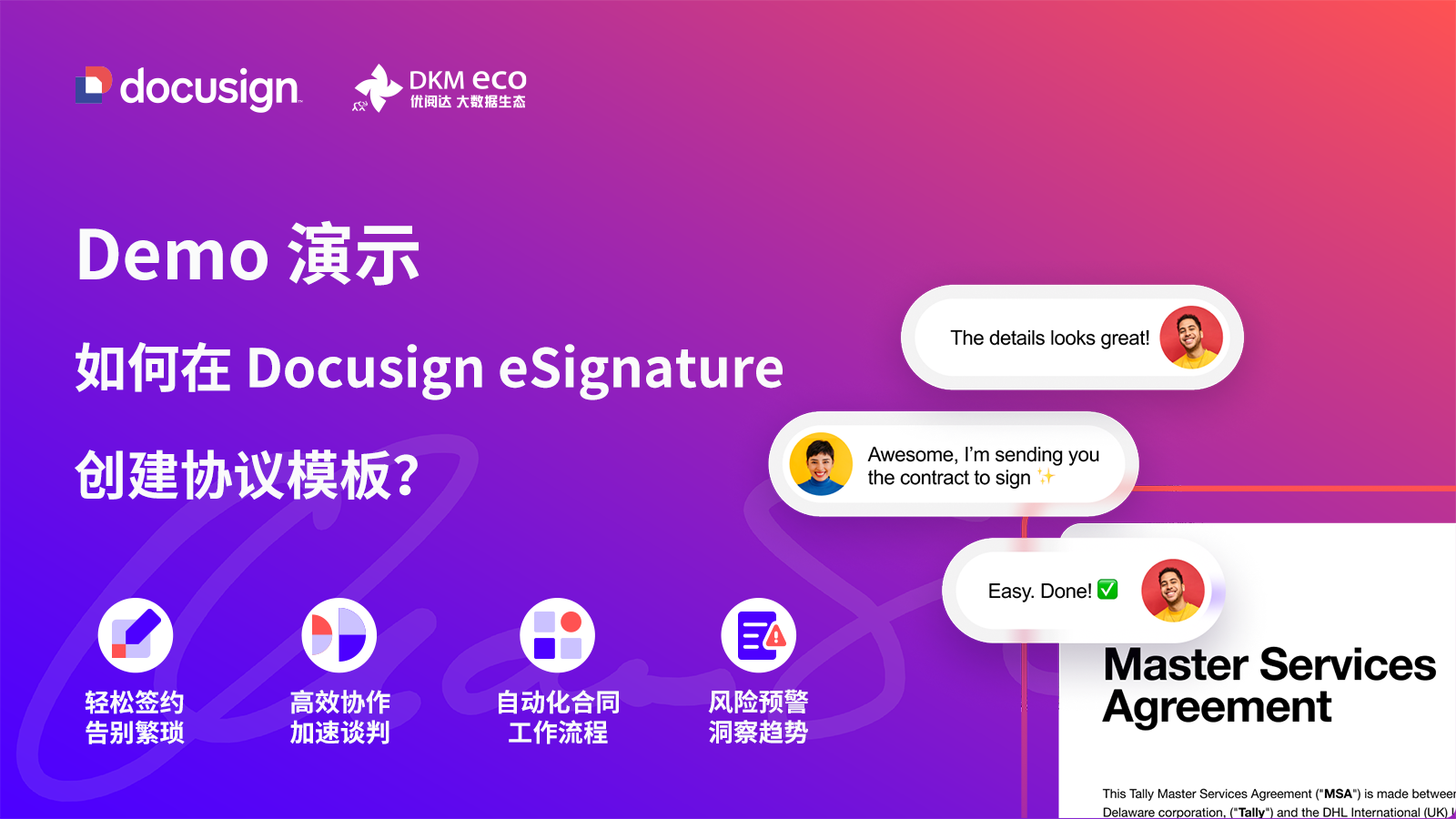 还在为繁琐的协议签署流程头疼?Docusign eSignature 让签署变得轻松快捷!无需反复核对条款格式,无论何时何地,通过协议模板即可一键发起签署,快速完成合同流程程,大幅缩短业务周期。想知道如此强大的功能如何轻松上手?接下来就为你带来超详细的实操步骤!