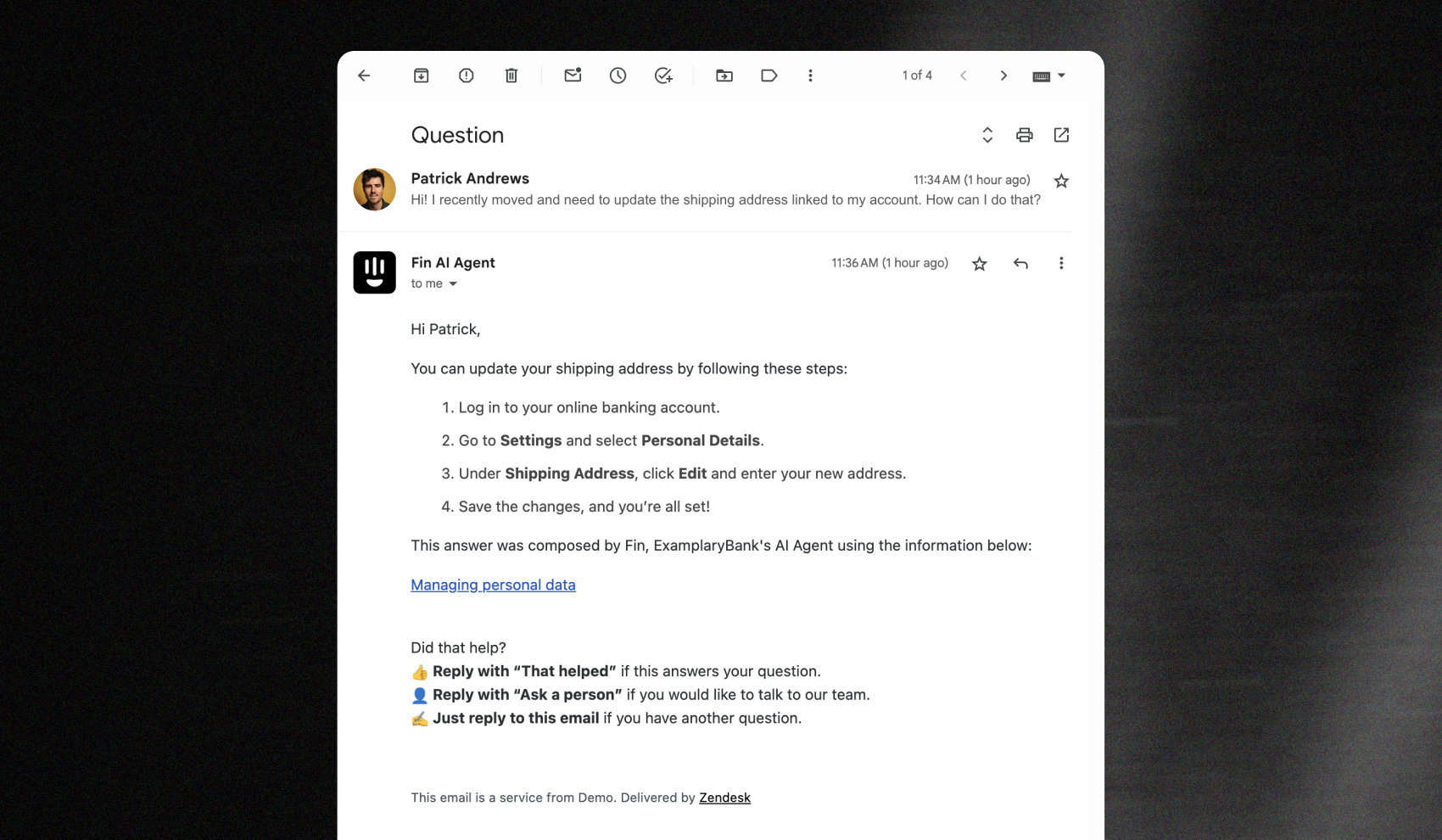👇点击下方视频,了解 Fin 如何与 Zendesk 的高效协作