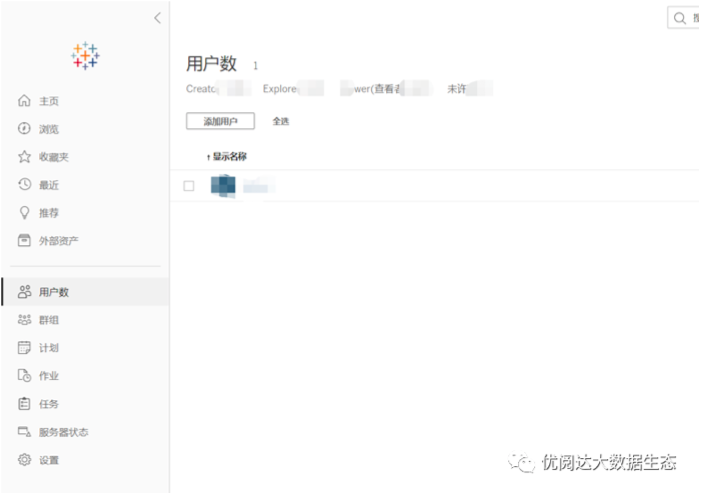 导入新用户,在 Tableau Server 首页-用户数,点击新建用户。
