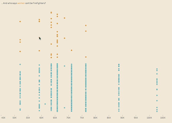 在对具体职业的分析中,将鼠标随机放在代表比较多中等收入的女性样本上,意外的发现:她们的职业居然都是消防员。哈,谁说女性不能当消防员呢!