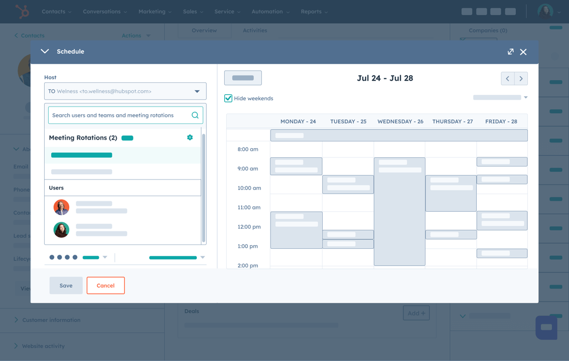 With HubSpot Meetings, reps can share a booking link so prospects can select a convenient time, automatically syncing to both parties’ calendars and logging the event in CRM.