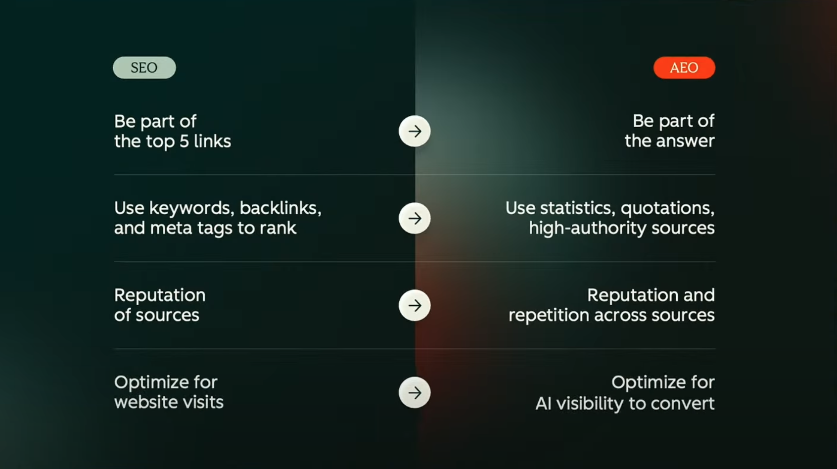 - Experiment with and optimize AEO strategies to quickly validate different content approaches;