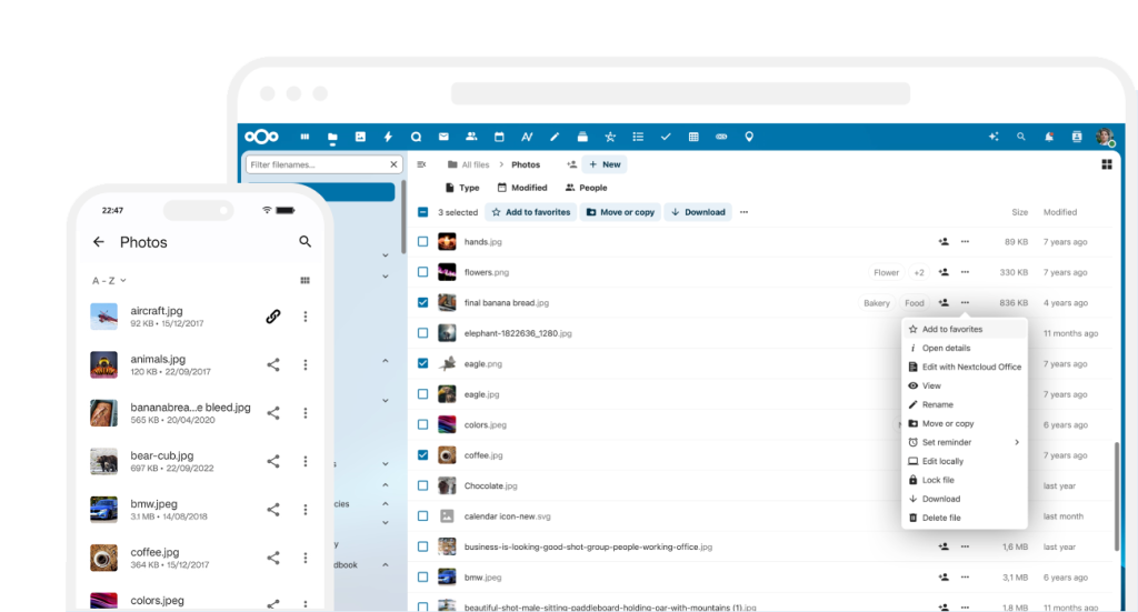 Nextcloud Files offers a self-hosted file storage and sync platform with powerful collaboration capabilities with desktop, mobile and web interfaces
