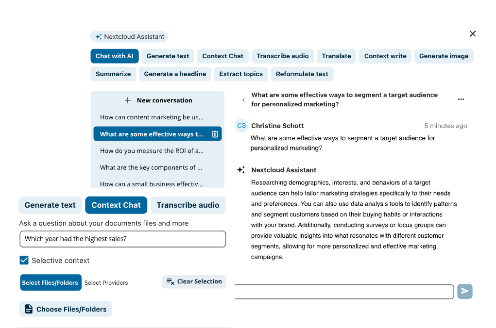 - Context Chat to answer questions about your data