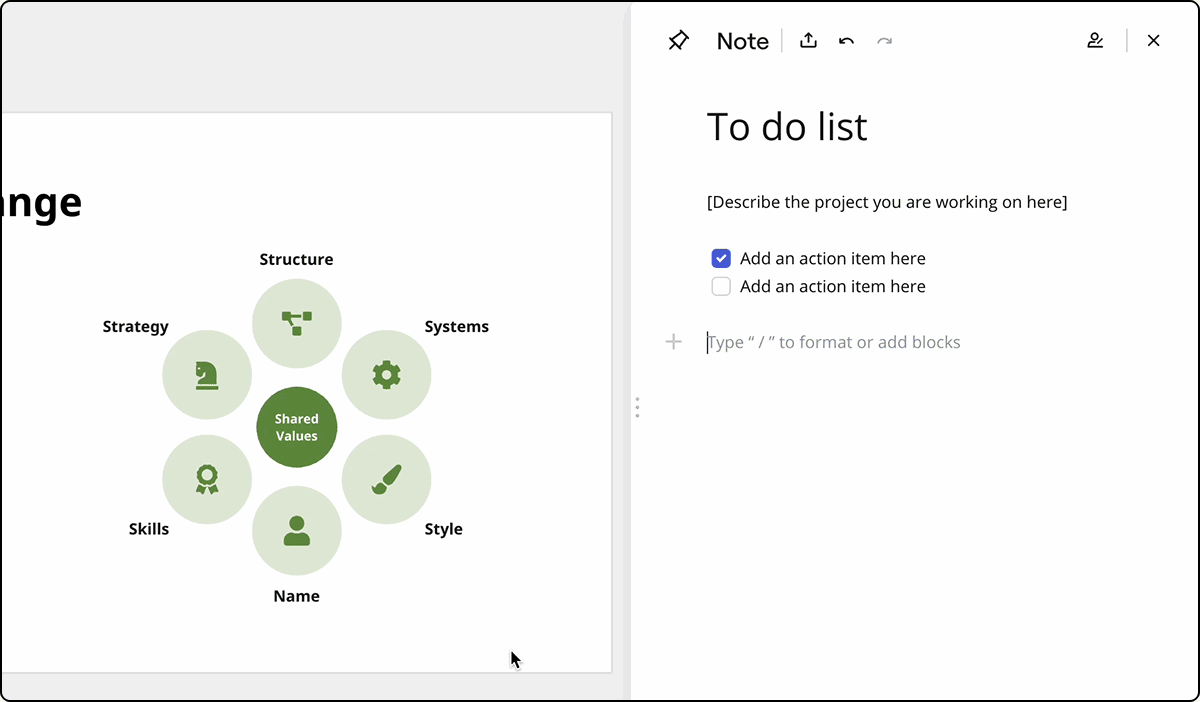 - During the Retrospective: Miro’s Visual Notes feature helps record key conclusions and follow-up action items. You can also directly copy the canvas template used in this workshop for future use.
