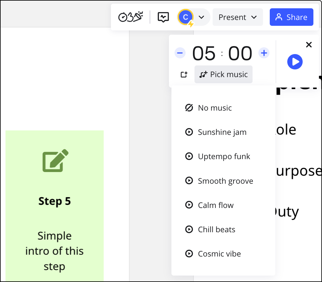 Miro’s board features the “Voting” function for anonymous or named voting, helping quickly focus on priorities, and the “Timer” feature to set time reminders, keeping meetings on track.