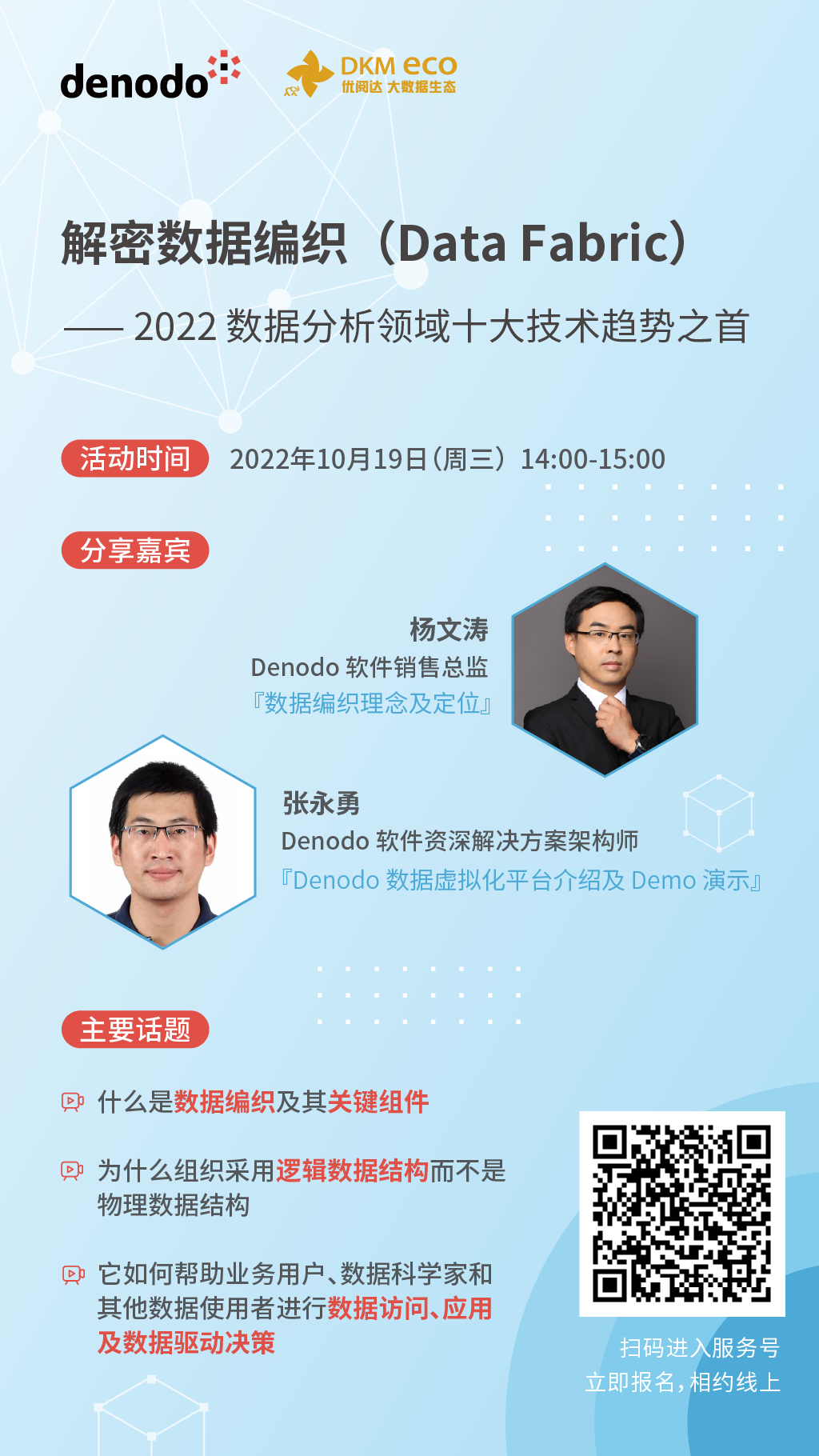 速速点击下方按钮报名,相约直播间,与 Denodo 专家顾问深入交流:数据编织技术如何助力企业高效管理和应用数据!