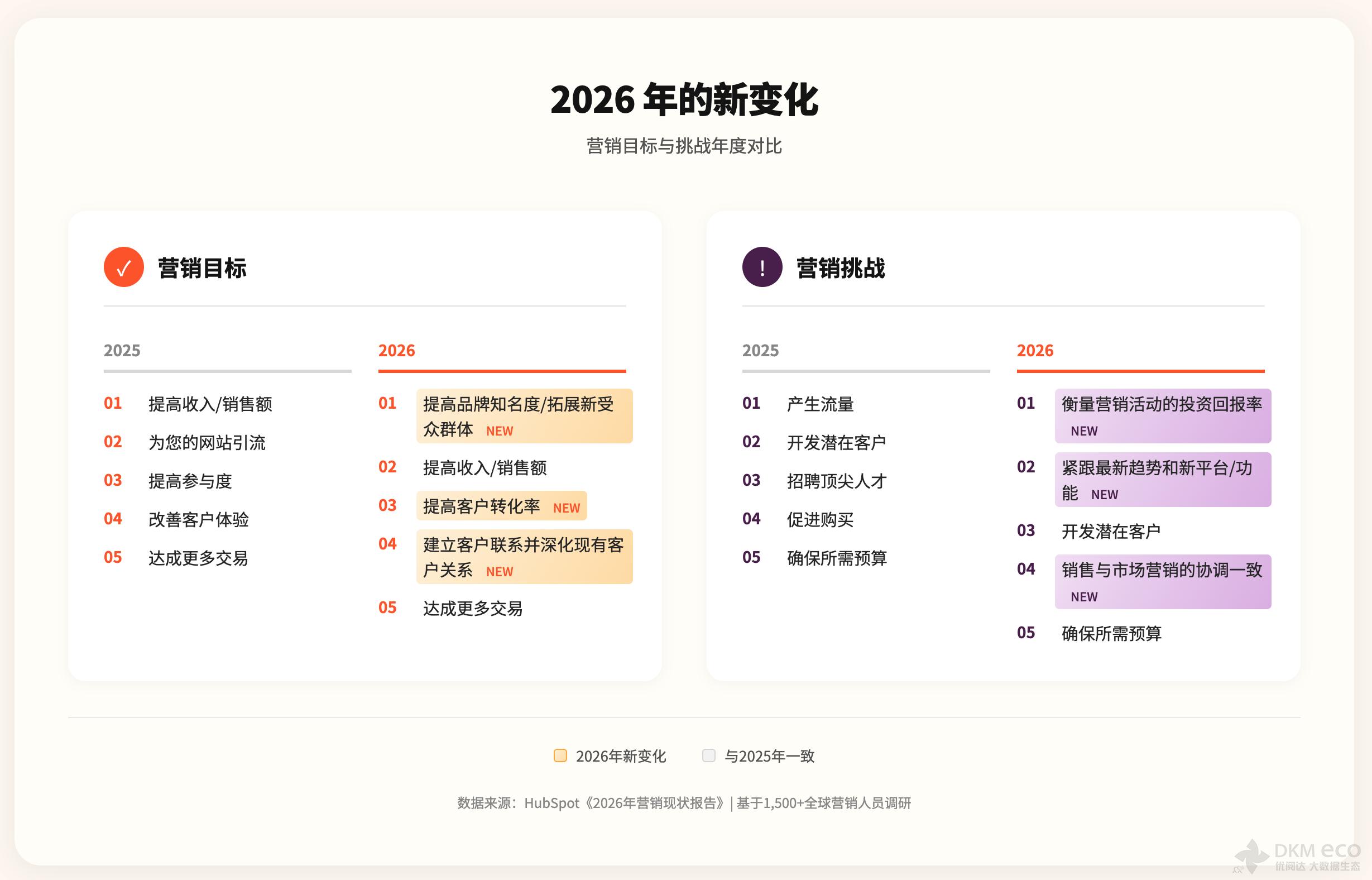 为此,HubSpot 对来自北美、欧洲、亚洲和澳大利亚的 1,505 位营销人员进行了深度调研,并发布了这份《2026 营销现状报告》,旨在为你呈现当前营销界最为关注的核心趋势、面临的主要挑战,以及最具启发性的数据洞察。