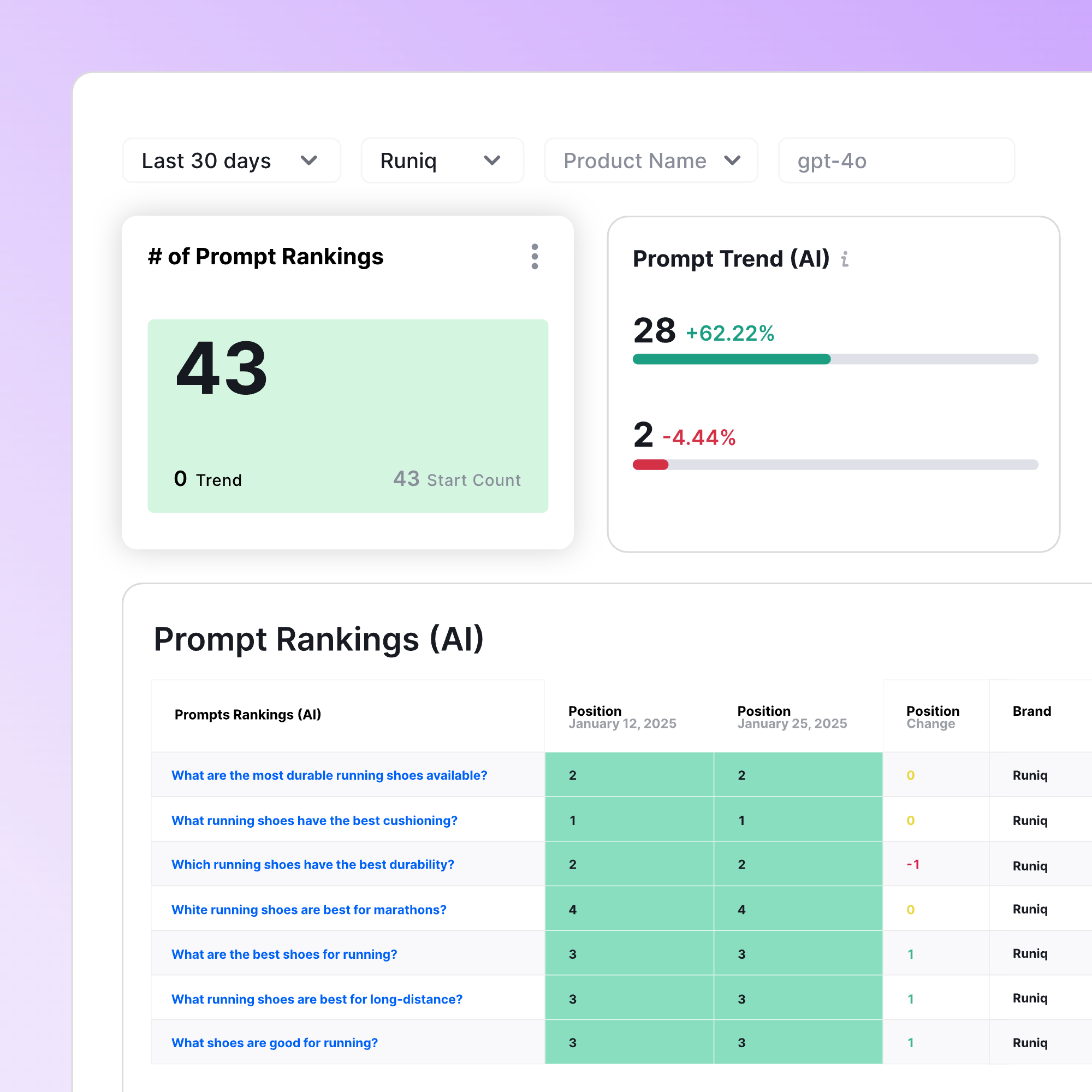 通过 Prompts 追踪,企业可以发现与自身行业相关的高价值问题,监测品牌在这些问题回答中的出现频率,并追踪可见性的变化趋势。